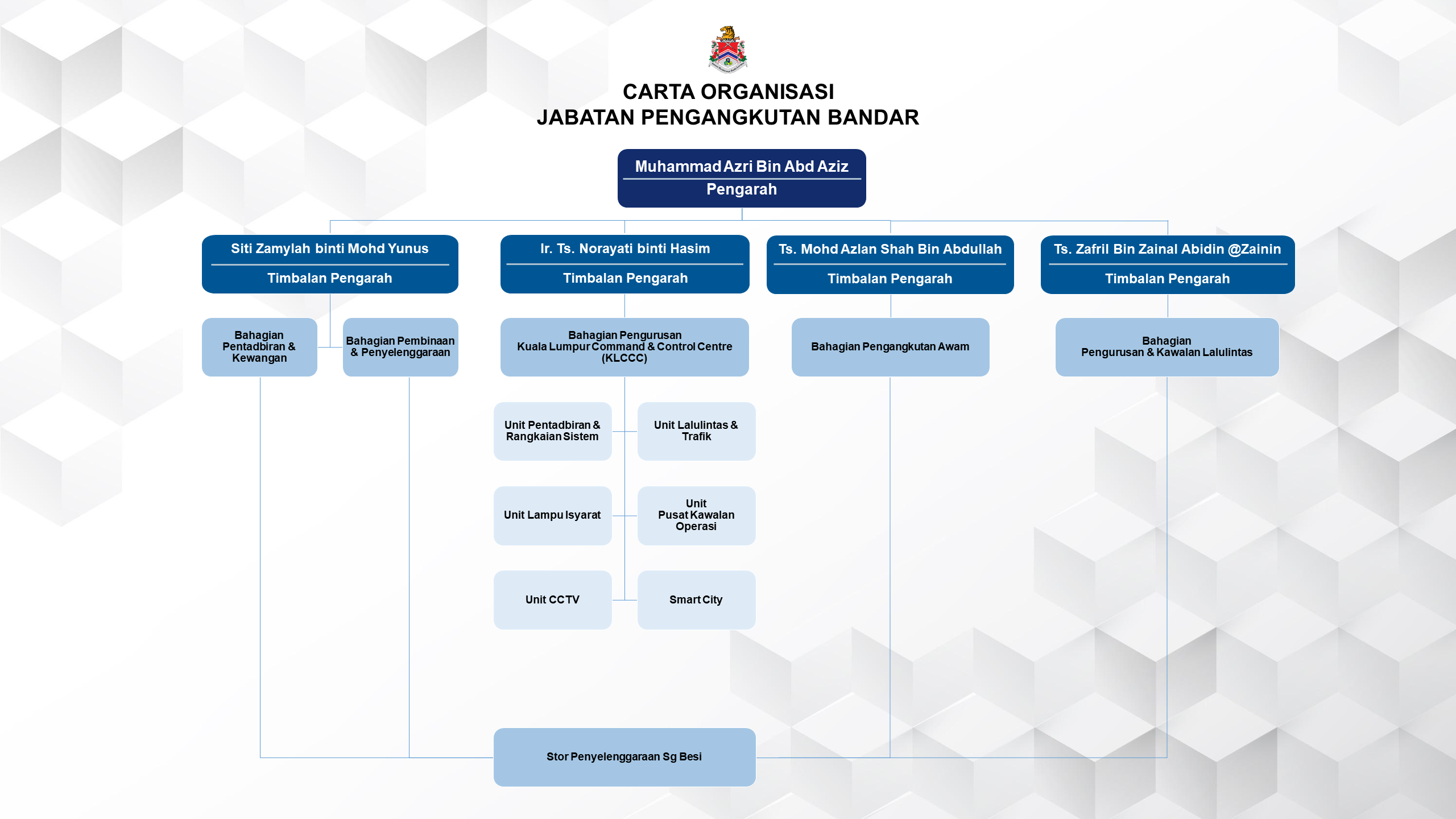 | 8 | Ir. Ts. Mohd Azlan Shah Bin Abdullah | Timbalan Pengarah (J12) | 03-20282293 | azlanshah | - | Bahagian Pengangkutan Awam | - | Tingkat 8, Menara DBKL 2 |